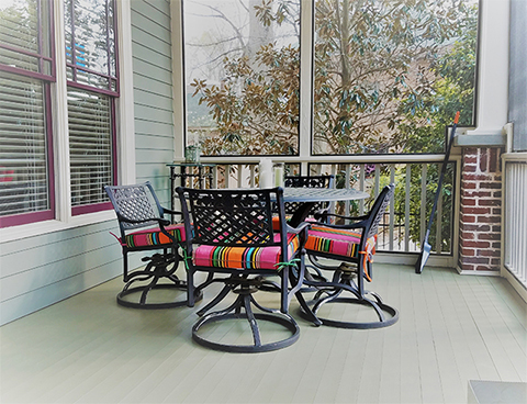 Dear Custom Cushions... I received my cushions 1 day early (thank you!) and love them. The fabric brightens up the entire newly screened front porch, and I couldn't be happier with the quality of the product and workmanship. We now have a whole new living space, and are already enjoying it! Thank you!